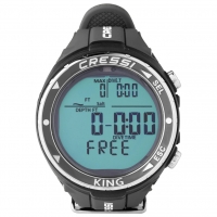Das Cressi Apnoetauchcomputer King ist ein äußerst vielseitiger UhrenComputer für Freitaucher, der trotz seines kompakten Gehäuses ein kontrastreiches Display besitzt. Der von Cressi entwickelte Algorithmus schützt den Freitaucher vor dem TaravanaSyndrom und vermeidet das Risiko eines Lungenödems. Das Gehäuse ist aus robustem Material gefertigt und hält einer maximalen Tiefe von bis zu 120 m stand. Die Lünette besteht aus rostfreiem Stahl (AISI316), der mit innovativer Oberflächenbehandlung und "inkfilled"Technologie für die Beschriftung versehen ist. Das Armband aus Silikon und Polyamid ist sehr weich und komfortabel zu tragen.